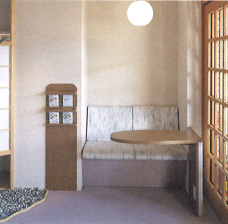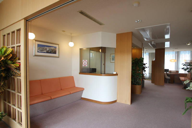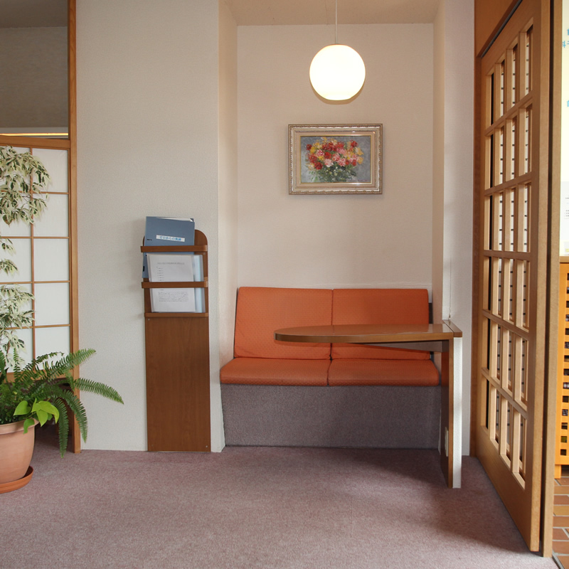 このエリアは最初に来院した方が申込用紙を書きやすいよう、テーブルを設けています。
