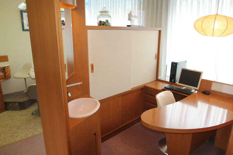 OMUユニットには受付のすぐ近くに衛生士の為のエリアがあります。衛生活動に重点を置き、ブラッシング・予防を大切にしています。