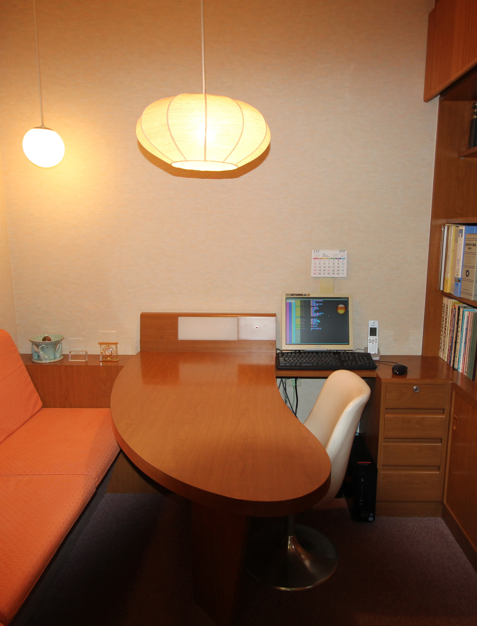 ここは最初に患者さんの状態を確認する為のエリアです。座った患者さんと立ったドクターの視線が合うように高さが考えられています。